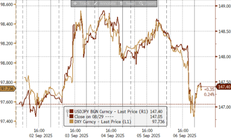 ► 上周(9/1-9/5):弱美元背景下,日元表现更弱